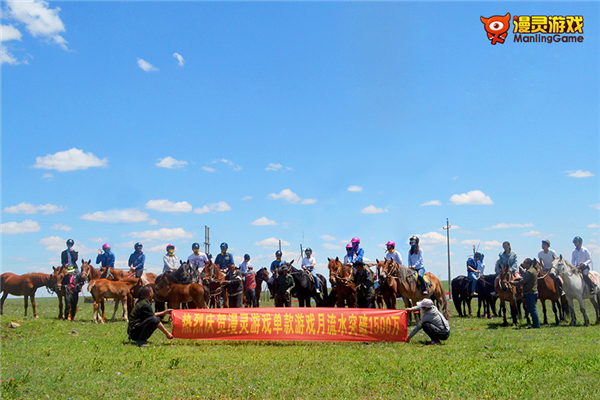 漫灵游戏员工骑马合影留念漫灵游戏单款游戏月流水突破1500万的佳绩